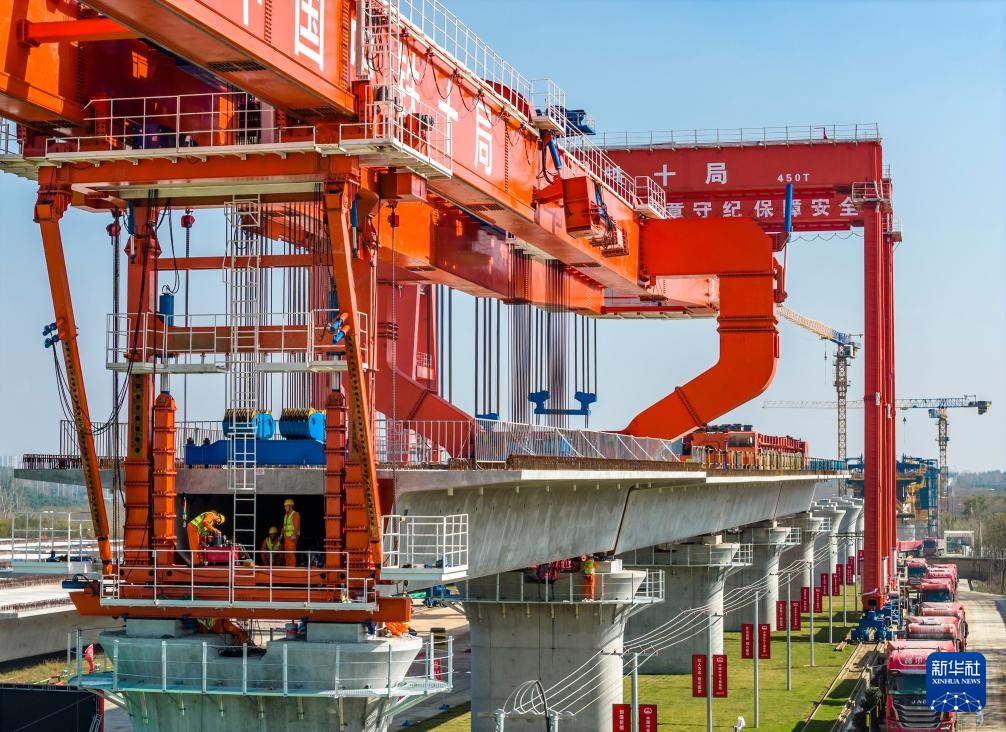 这是合五高铁安徽段前肥西梁场首个箱梁施工现场(11月15日,无人机拍摄)。近日,合五高铁安徽段全面进入梁箱施工阶段,施工人员正在梁施工线上奋力拼搏,确保铁路重大工程建设顺利推进。据悉,合武高铁是“八纵八横”沿江高速铁路网的重要组成部分,设计时速350公里。该线路建成后,将在合肥至武汉之间打造一条新的高铁通道,进一步优化长江经济带铁路网布局。新华社(刘育才 摄) PageBreak 这是肥西大梁施工场前的第一座箱梁施工现场合乌高铁ui路段(11月15日,无人机拍摄)。近日,合五高铁安徽段全面进入梁箱施工阶段,施工人员正在梁施工线上奋力拼搏,确保铁路重大工程建设顺利推进。据悉,合武高铁是“八纵八横”沿江高速铁路网的重要组成部分,设计时速350公里。该线路建成后,将在合肥至武汉之间打造一条新的高铁通道,进一步优化长江经济带铁路网布局。新华社发(刘玉才 摄) 这是合五高铁安徽段前肥西制梁场第一根箱梁施工现场(11月15日,无人机拍摄)。近日,安徽板块和乌高铁全面进入梁箱施工阶段,施工人员正在梁施工线上奋力拼搏,确保铁路重大工程建设顺利推进。据悉,合武高铁是“八纵八横”沿江高速铁路网的重要组成部分,设计时速350公里。该线路建成后,将在合肥至武汉之间打造一条新的高铁通道,进一步优化长江经济带铁路网布局。新华社发(刘育才 摄) PageBreak 这是合乌高铁安徽段前肥西制梁场第一根箱梁施工现场(11月15日,无人机拍摄)。近日,合乌高铁安徽段全面进入梁箱施工阶段,施工施工人员正在架梁施工线上奋力拼搏,确保铁路重大工程建设顺利进行。据悉,合武高铁是“八纵八横”沿江高速铁路网的重要组成部分,设计时速350公里。该线路建成后,将在合肥至武汉之间打造一条新的高铁通道,进一步优化长江经济带铁路网布局。新华社发(刘育才 摄)