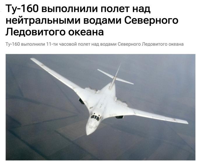 中新网11月26日电 据俄新社当地时间25日援引俄罗斯国防部消息,俄罗斯TU-160远程战略轰炸机在北冰洋中立海域进行例行巡逻。图片来源:俄新社报道截图。声明称,“TU-160远程战略轰炸机在北冰洋中立海域上空进行了例行飞行,飞行时间超过11小时。”声明还指出,该航班严格遵守国际空域使用规则。