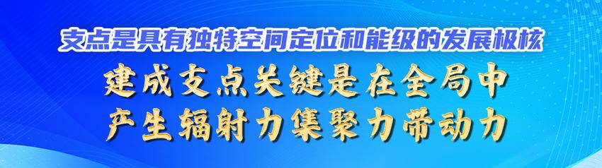 支点是经济空间结构中极核型和轴型点的顶点。密集核心强调经济活动和资源要素的高度集中。点轴指向支点带动的区域新增长点,布局形成发展轴、发展轴。
